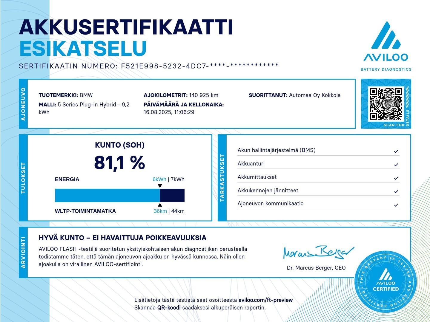 - ** Pyydämme huomioimaan, että auton tekniset tiedot (kulutus, latausaika, toimintasäde) saattavat poiketa oleellisesti valmistajan ilmoittamista arvoista, sähkö- ja hybridiautoissa talviolosuhteissa sähkömoottorin käyttö voi olla rajoitettu
